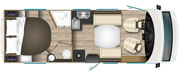 - Living room converts to occasional single bed (90 x 200 cm) (option)